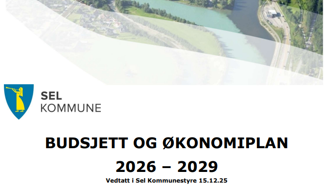 Vedtatt budsjett og økonomiplan 2026-2029 samt gebyrregulativ for 2026 Sel kommunestyre vedtok i kommunestyremøte 15.12.25 budsjett og økonomiplan for 2026-2029.Økonomiplanen er redskapet for prioritering av innsats, ford... Publisert 09.01.2026 kl. 08.49