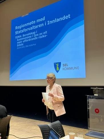 Eldri Siem, ordførar i Sel, fortalte om felles beredskapsarbeid som kommunane i Nord-Gudbrandsdalen gjer.