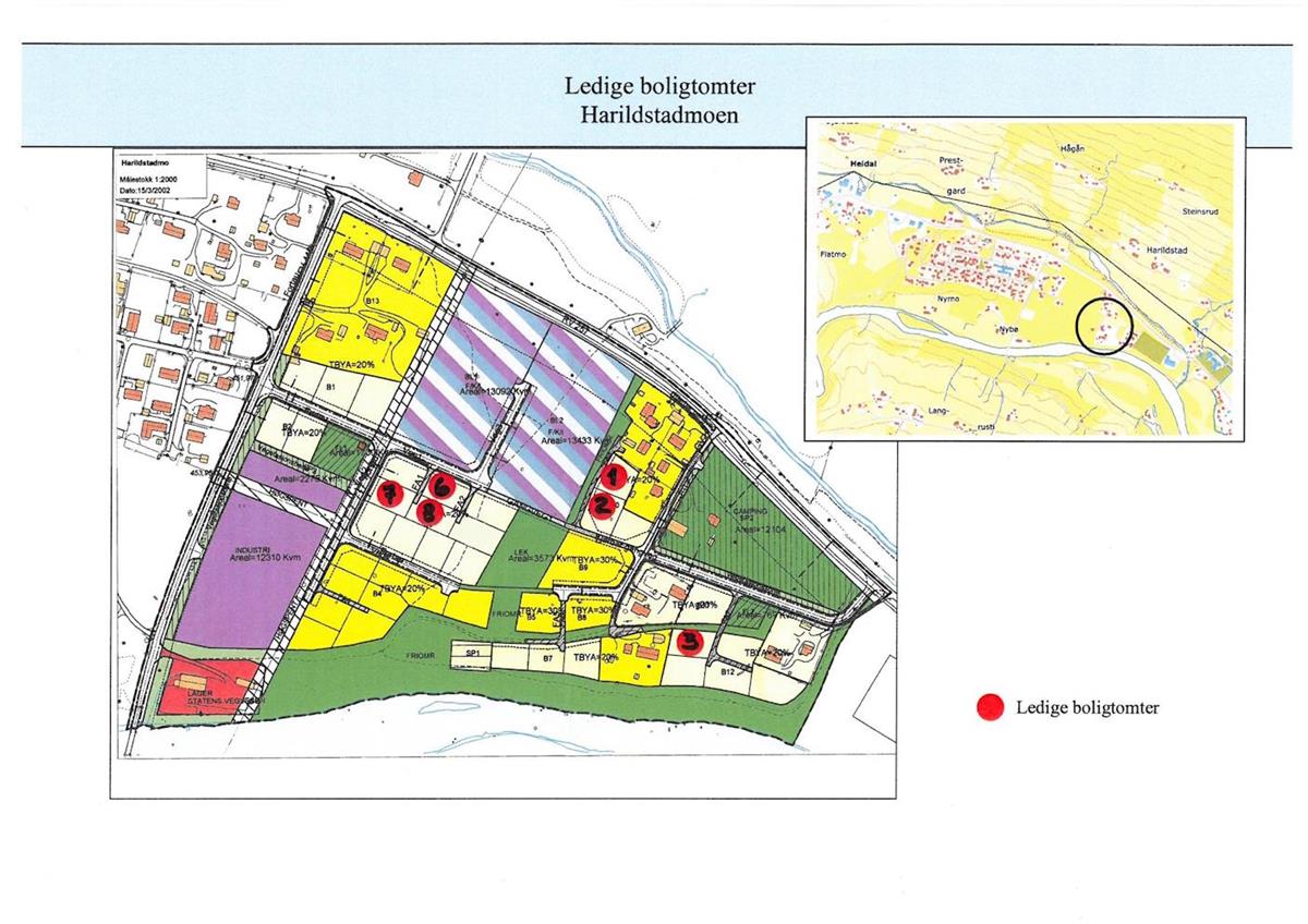 Tomter HarildstadmoenBjølstadmo er sentrum i Heidal med nærhet til butikker, kafe, barnehage, skole, idretts- og svømmehall. Flott utgangspunkt for turer i fjellet eller rafting i Sjoa.Kartutsnitt av HarildstadmoenPå kartutsnittet nedenfor ser du hvor de ledige tomtene er lokalisert.Ledige tomter er merket med rød prikk. PDF-format av kartutsnitt: Her kan du laste ned kartutsnittet over Harilstadmoen i PDF-format: Harilstadmoen (PDF, 4 MB)Her kan du se prisene på de kommunale boligtomtene Publisert av Anders Teigen Sist endret 28.01.2026 12.57